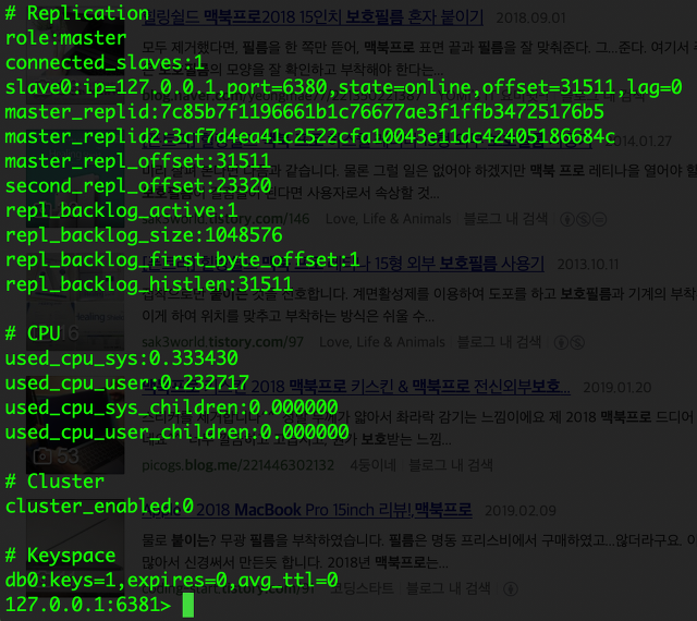 기존에 마스터였던 6379는 슬래이브로, 기존에 슬래이브였던 6381이 마스터로 선출되었습니다.