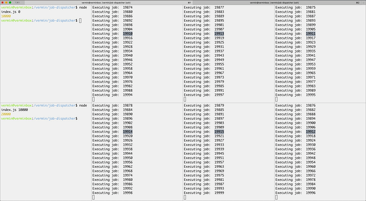 그리고 job-dispatcher다음과 같이 두 개의 터미널 에서 2 를 실행 해 보겠습니다 .